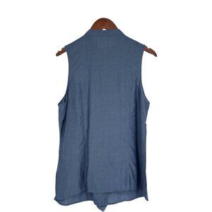 NWT The Limited L Blue Sleeveless Blouse Button Ruffle Front Button Up Shirt