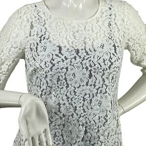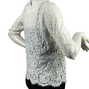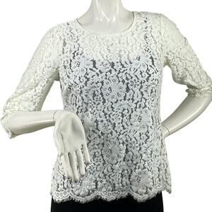 The Limited Lace 3/4 Sleeve Sheer Blouse Womens Size S Stretchy Comfort Keyhole Button Closure Vintage White.
