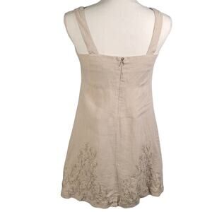 The Limited Linen Mini Dress 4 Beige Embroidered Floral Hem Sleeveless Casual