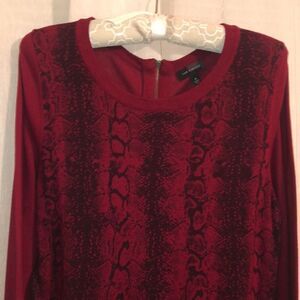 The Limited M Burgundy Black Snake Print Front Light Crewneck Sweater Back Zip