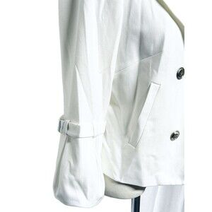 The Limited Marshmallow White Open Front Blazer Jacket w Large Gold Button Accents New Sz 10