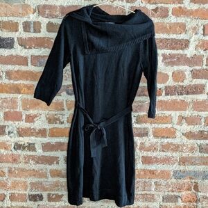 The Limited Medium Black Wool Blend Cowl Neck Knit Sweater Dress w/ Belt
