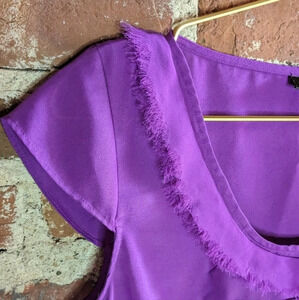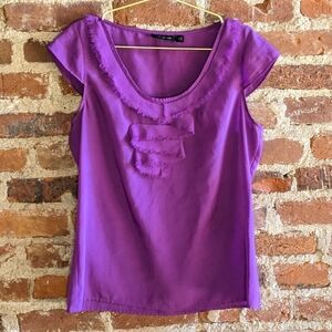 The Limited Medium Purple Cap Sleeve Blouse w/ Frayed Edge Ruffles