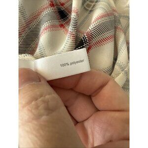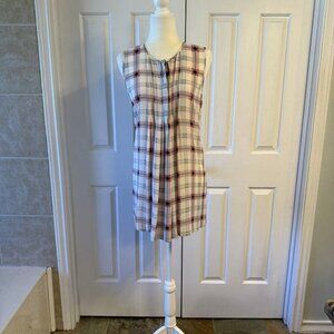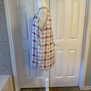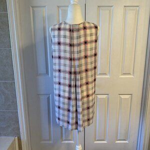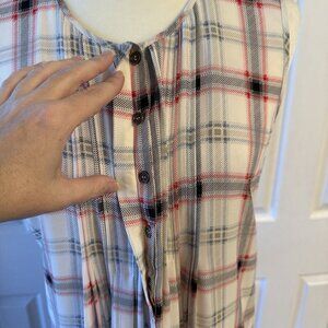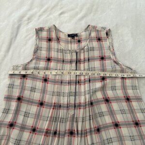 The Limited Womens Tunic Small Cream Red Grey Plaid Black Pleated 1/2 Button Sleeveless