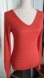 The back side has tiny cutouts going down the middle, ribbed cuffs, waist and neckline, v-neck, soft, lightweight, fine knit