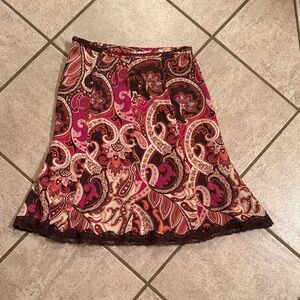Vibrant paisley design with rich colors. A-line silhouette. Knee length. Perfect for any occasion.