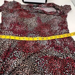 The Limited Women’s Off The Shoulder Handkerchief Hem Midi Dress Size L Mauve White Black Print