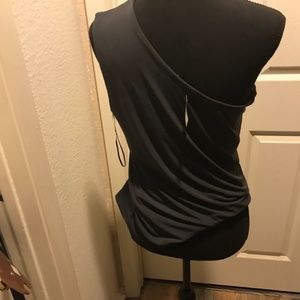 One strap wonder. Must have , "evening out" off the shoulder blouse, the color is a slate gray and the jewels at the shoulder add a beautiful soft look to the shoulder