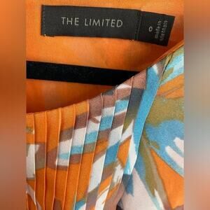 The Limited Orange Red Multicolored Floral Pleated Sleeveless Dress with Belt