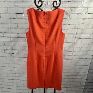 Brighten up your wardrobe with this vibrant orange sheath dress by The Limited. Designed with a flattering silhouette, this sleeveless dress features a stunning crochet lace overlay on the bodice for a touch of feminine detail. The back zip closure offers ease of wear, making it perfect for both work and special occasions.