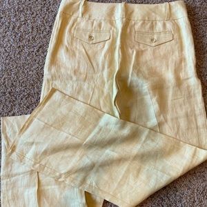 Stylish light yellow linen trousers. Versatile and chic. Ideal for any wardrobe.