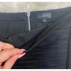 Black The Limited Pencil skirt. Textured, striped pattern in front with diagonal slit in front. Short zipper on back. Excellent, like new condition. Only worn a handful of times. Size 0.