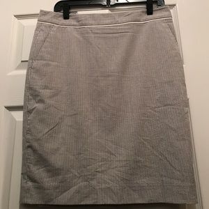 The Limited Pencil Skirt | Size 10 Light blue/grayish color. Zipper back with hook enclosure. Lined with slit in the back. 97% cotton 3% Spandex. Length of skirt is 22 inches. Worn once. Excellent condition.