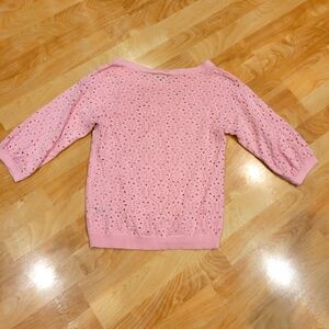 Chic pink eyelet top. Features three-quarter sleeves. Perfect for casual outings or the office. Light weight sweater. Size XS. No flaws just clearing out my closet of some things I don't wear. If you're a The Limited fan make a bundle! give got quite a bit!