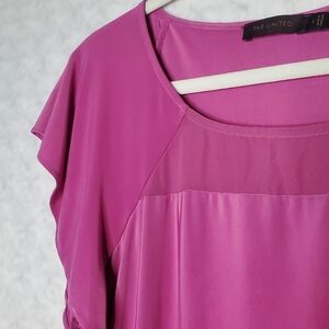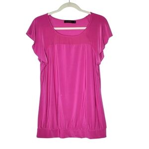 Dark pink top with flutter sleeves. Slightly sheer at the top. Banded bottom. Excellent condition.