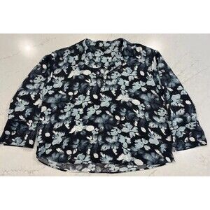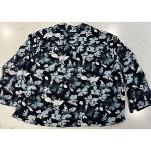 The Limited Plus Blue Sea Foam Gray Floral Pullover Long Sleeve Top Blouse Sz 2x