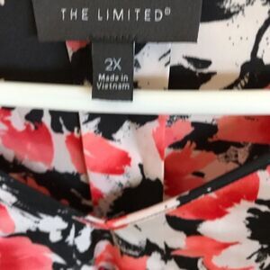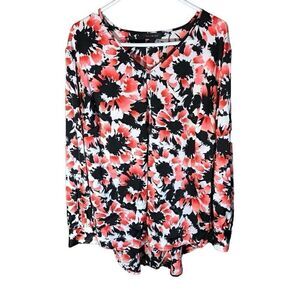 The Limited Plus size 2X floral silky feel Blouse Top coral orange black button cuff long sleeve - polyester spandex blend