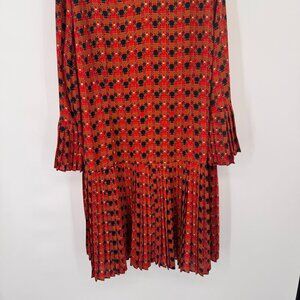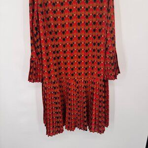 The Limited Red Black Geometric Pleated bell Sleeve Dress Womens 20W plus