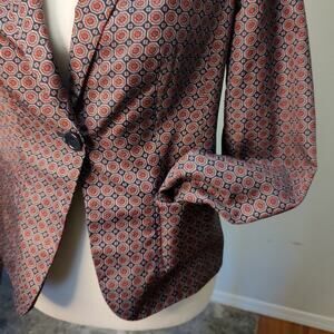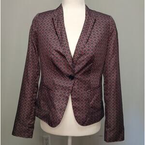 The Limited Red Blue Geometric Print Long Sleeve One Button Blazer Jacket XS