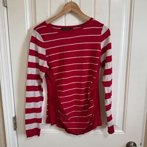 The Limited Red Striped Long Sleeve Top Ruched Knit Sweater Women's Medium