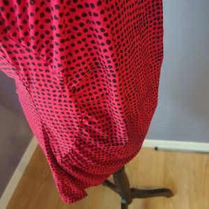 Very flattering has ruching on the sides. Dress up or dress down. Stretchy material.