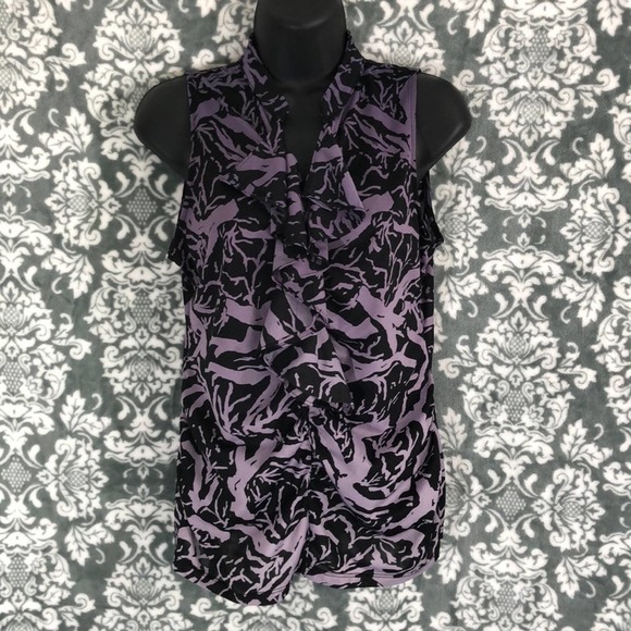 The Limited Rouched Purple & Black Ruffled Top, size M.