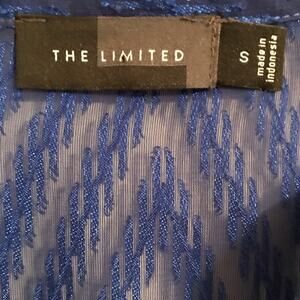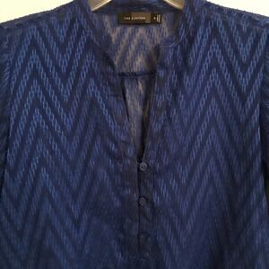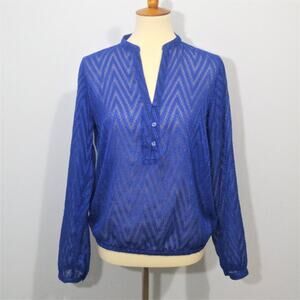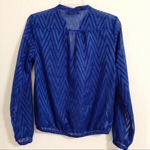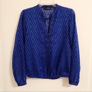 Sheer Royal blue Cheveron Sheer Blouse- buttons 1/2 way down, buttons at cuffs, elastic at the waist