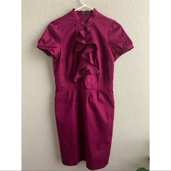 The Limited dress size 6. Ruffle neckline. Side zipper. Short sleeve dress with two front pockets. Fuchsia color. Great condition only worn a couple of times.