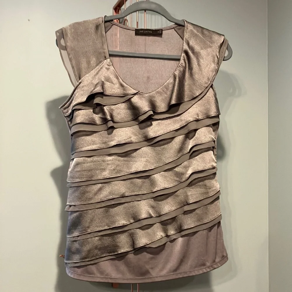 Cute ruffle shirt from The Limited. Very comfortable fabric, and super flattering. Great condition!!! Size medium.