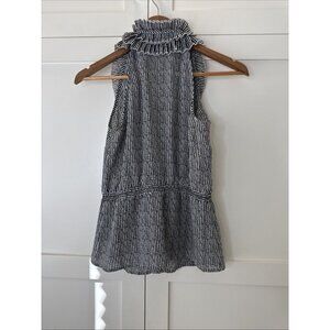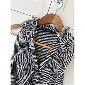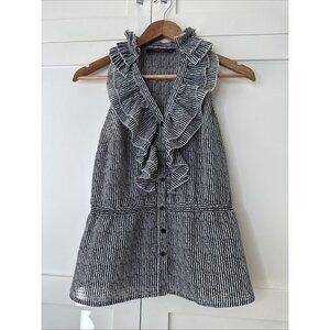 The Limited Ruffle Sleeveless Blouse Top Black & White Stripe XS