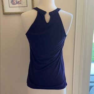 This elegant sleeveless top features a stylish ruffle design, perfect for any occasion. The rich purple color adds a touch of sophistication to your wardrobe.