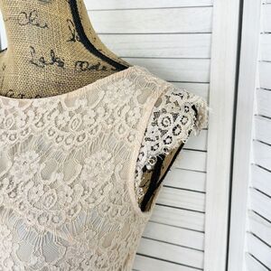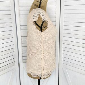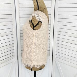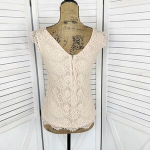 The Limited Scandal Collection Lace V Back Blouse Tan Nude Small Cap Sleeve