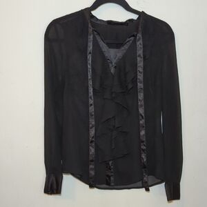 The Limited Sheer Black Ruffle Blouse Button Up Shirt Women's Size XS
