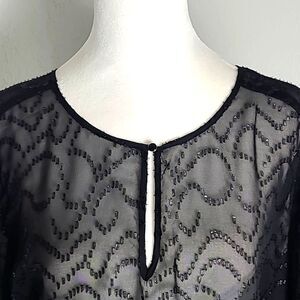 The Limited Sheer Black Top with Sequin Fringe Designs, Size XL