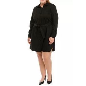 The Limited Short Sleeve Black Belted Shirt Dress Plus 4X Button Front Short NEW