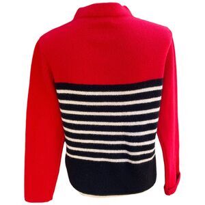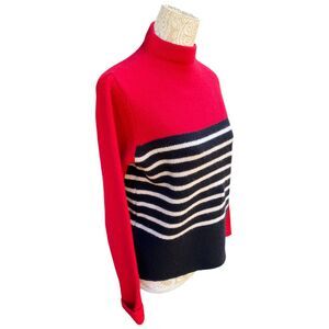 The Limited Size L 100% Lambswool Mock Neck Sweater Red White Black Striped