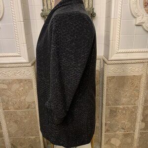 The Limited. Size L. Open Front Jacket. Pleated Cuffs. Self Lined Front Only. Poly/Rayon/Spandex. Rather heavy. Center back 29". Sleeve 20" pleated. Bust 43.4". Excellent pre-loved condition. No spots, tears or damage.