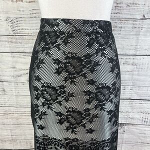 The Limited Skirt size 12 Black Silver Floral Lace Straight Pencil Knee Wedding