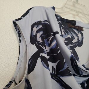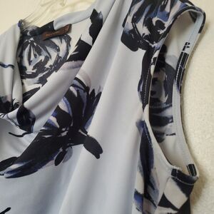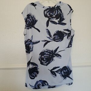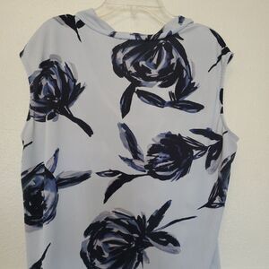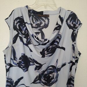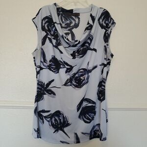 The Limited Sleeveless Top Office Polyester Spandex Cowl Neck Blue Roses XL