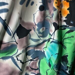 Strapless dress from The Limited. Graffiti style floral pattern. Silky polyester. Pockets. Side zip. Size 4. Approximate flat lay measurements- Bust: 16” across from armpit to armpit. Waist: 13.5” across. Length: 30”. Gently preowned condition with no tears or stains.