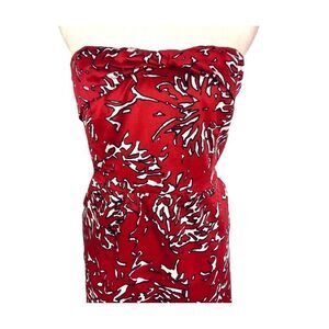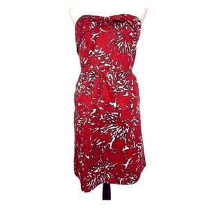 Strapless dress by The Limited featuring a striking red and white coral print. Ideal for semi-formal events or an evening out.
