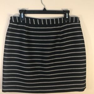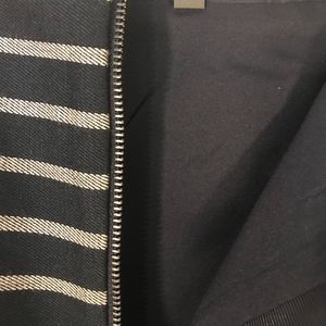 Elegant Dark Blue Skirt with White Stripes and Zipper Down the front