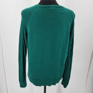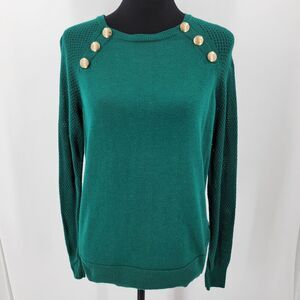 The Limited Sweater Womens Large Green Open Knit on Sleeves Gold Button Accents Pullover. See Photos for Approximate Measurements.