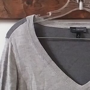 Soft and cozy vintage lightweight sweater by The Limited. It is 2 tone, light gray in the front and a darker medium gray at the back. This is a great looking Y2K sweater that is in excellent pre-owned condition with no flaws. Really, it is almost new and has had minimal use, if any. It is a pullover with a V neck that has gentle ribbing at the neck, cuffs of the long sleeves and hem. There are notches at each side of the hem. The two colors appear to be woven together rather than sewn. It is extremely soft and is great for those with delicate or sensitive skin. It can take the place of a long sleeve tee shirt as an upgrade in layered looks or stand alone in its delicate yet durable glory. It is no wonder that this particular sweater has always been popular and sought out. This is a real find in such great condition.