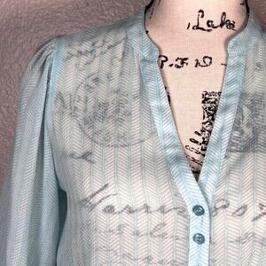 The Limited Sz S Sheer Blouse 3/4 Balloon Sleeve Pale Blue Striped Buttons