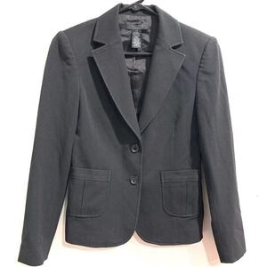 Sleek + elevated black power blazer from The Limited. Tailored silhouette with subtle stretch for a smooth, flattering fit. Notched lapel, two-button front, fully lined. Polished + classic — perfect from office hours to evening.