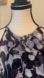 This elegant sleeveless halter blouse from The Limited features a striking black , purple and white pattern with a ruched hemline for a flattering fit. The lightweight fabric and halter neck design make it a perfect choice for a chic and breezy look.
