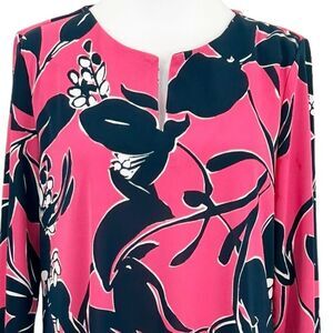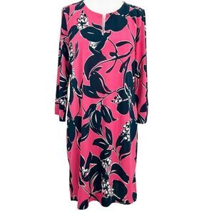The Limited Tunic Shift Dress Floral Pink Navy Blue Size LargeV-Neck 3/4 Sleeves