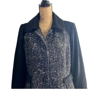 The Limited Tweed Recycled Wool Blend Coat Gray Black Peplum Size Large