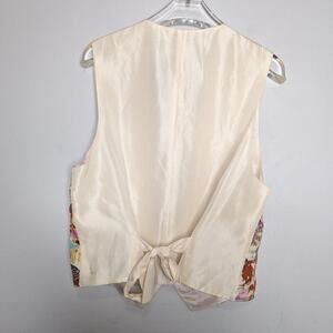 The Limited Vintage 90s Pink Cream Silk Vest Floral Newspaper Print Heart Button